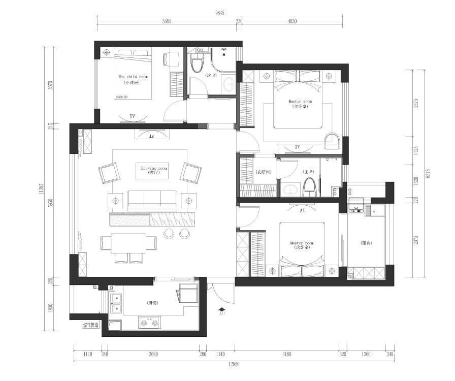 原始户型周正,设计师通过平面方案的设计,让整个空间更加开阔明亮。
