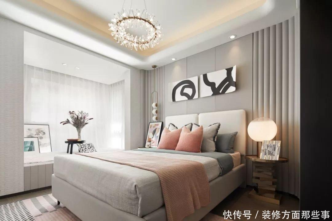 ·卧室·的挂画是巴塞尔艺术展作品的延伸设计,与简约大气的灯饰一起提升空间质感,床品搭配用烟灰粉和静谧蓝的颜色反差凸显高雅格调。